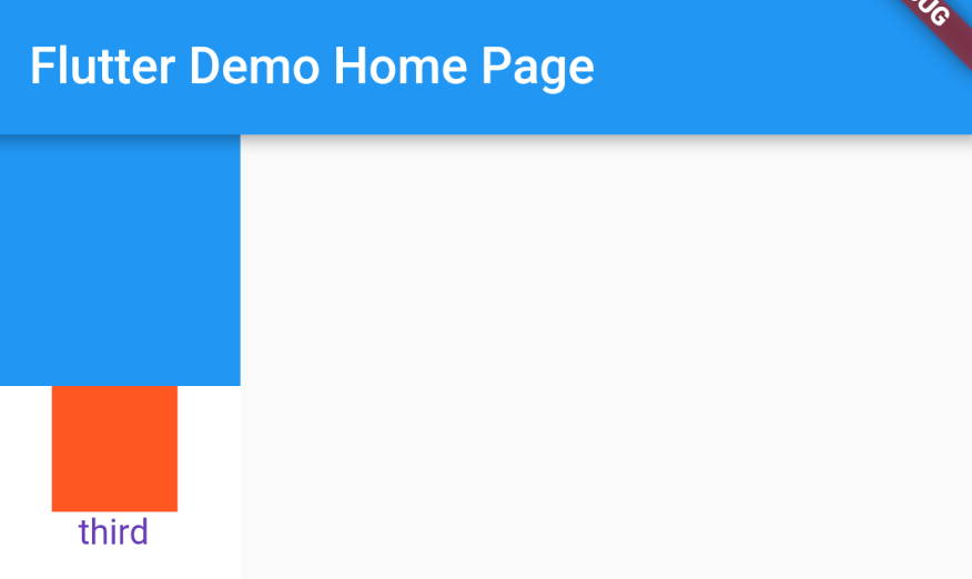 child: Container( color: Colors.white, child: Column( children: [ Container(height: 100, width: 100, color: Colors.blue,), Container(height: 50, width: 50, color: Colors.deepOrange,), const Text("third", style: TextStyle(color: Colors.deepPurple),) ], ))),