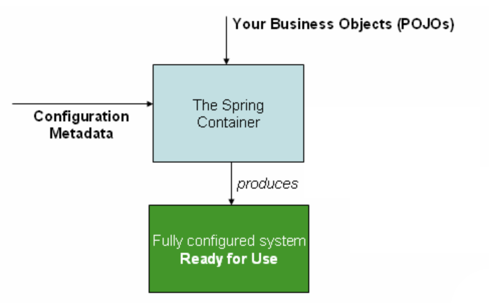 The interface org.springframework.context.ApplicationContext represents the Spring IoC container and is responsible for instantiating, configuring, and assembling the aforementioned beans. The container gets its instructions on what objects to instantiate, configure, and assemble by reading configuration metadata. The configuration metadata is represented in XML, Java annotations, or Java code. It allows you to express the objects that compose your application and the rich interdependencies between such objects.