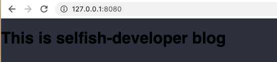 import React from 'react'; import ReactDOM from 'react-dom'; import './styles/styles.scss'; ReactDOM.render(<div><h1>This is selfish-developer blog</h1></div>, document.getElementById('app'))그 결과 아래처럼 스타일링이 된 것을 확인 할 수 있다.