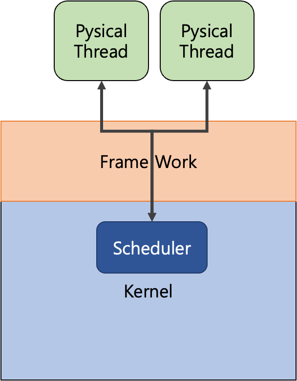 물리 스레드는 시스템 리소스를 직접 사용하기 때문에 cpu 집약적인 연산을 처리할 때 도움이 된다. 그런데 api 요청이 데이터 베이스로부터 값을 읽고 쓰는 I/O 바운드 작업의 경우 물리 스레드의 이점을 충분히 누릴수가 없다. 오히려 blocking 이 될 때마다 매번 OS 단에서 직접 컨텍스트 스위칭을 처리해줘야하는데 유저모드에서 커널모드를 왔다 갔다 해야하는 낭비만 필요하다.
