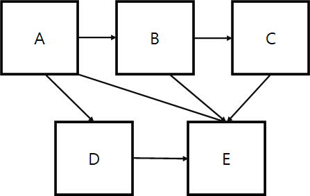 그림 2는 그림 1의 결합도 문제를 해결한 설계다. E에 의존했던 A,B 는 구조를 변경해 E를 참조하지 않아도 되게끔 수정했다. 또한 A와 D 간의 의존관계도 수정했다. 이전보다 의존 관계가 많이 줄었으므로 결합도가 낮아진 것으로 볼 수 있다.