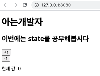state는 리액트 컴포넌트 내에서 사용할 변수를 관리하는 역할을 한다. 예로 간단하게 정수 값을 표시하고 1씩 증가시키고 감소시키는 버튼이 있다고 하자. 아래와 같은 기능을 제공하는 앱이라면 컴포넌트중 누군가는 현재 화면에 표시되는 값을 들고 있어야 한다.